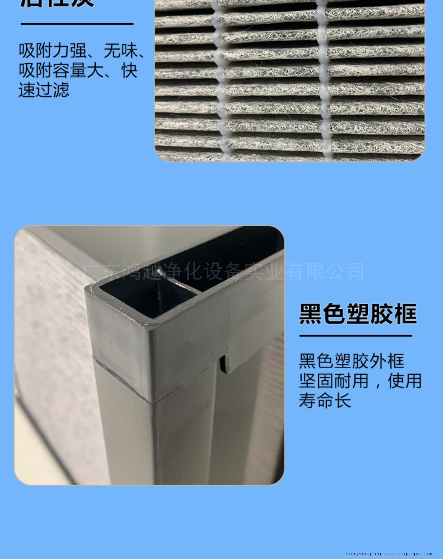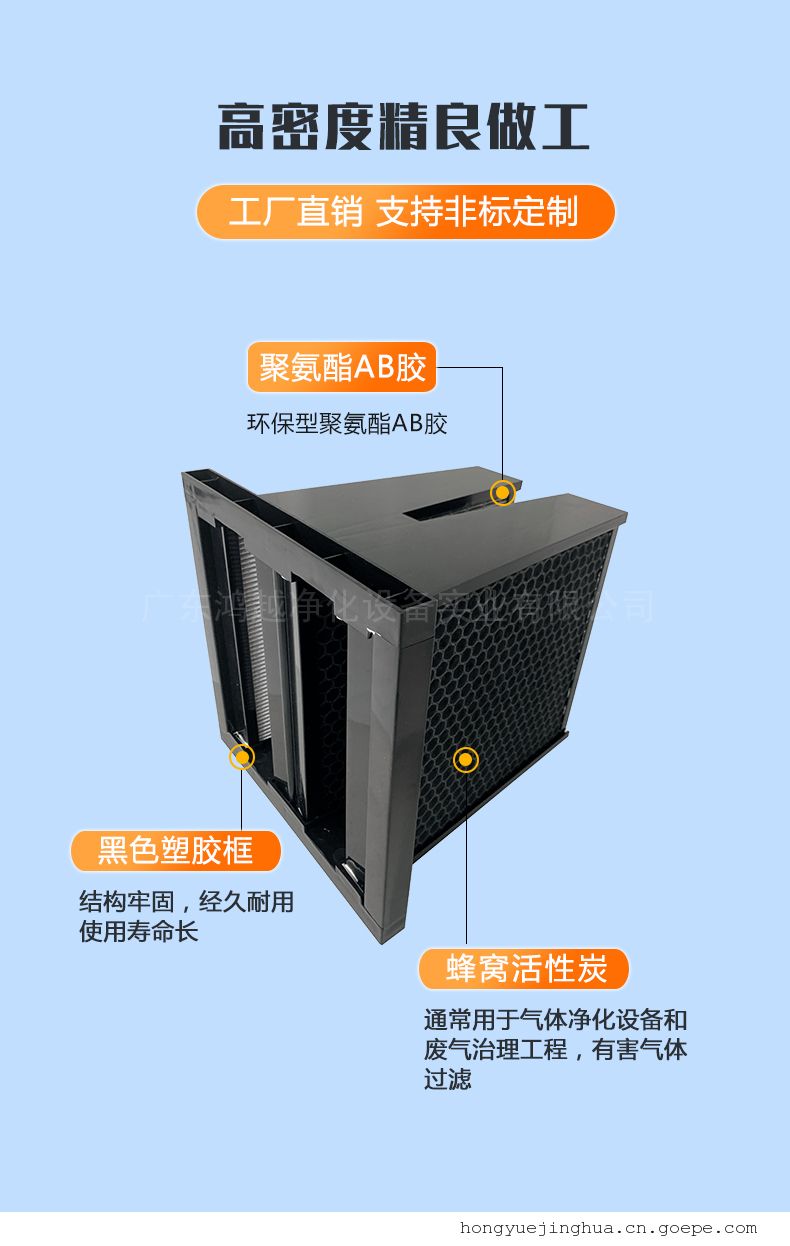 鸿越活性炭W型蜂窝炭化学夹碳布空气净化器塑胶框2V组合式高效过滤器HY-HXT2V