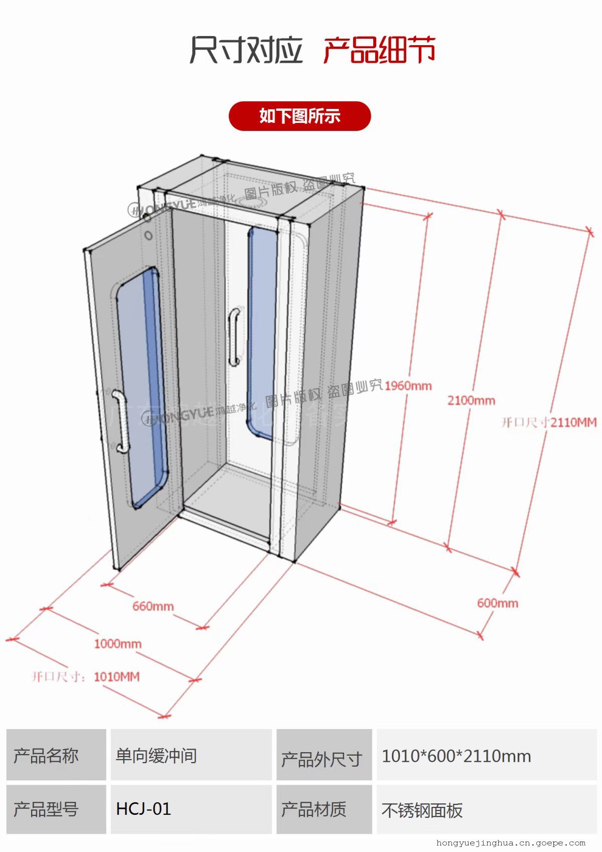 鸿越HCJ01不锈钢洁净单向缓冲间 生物医药缓冲室电子互锁装置